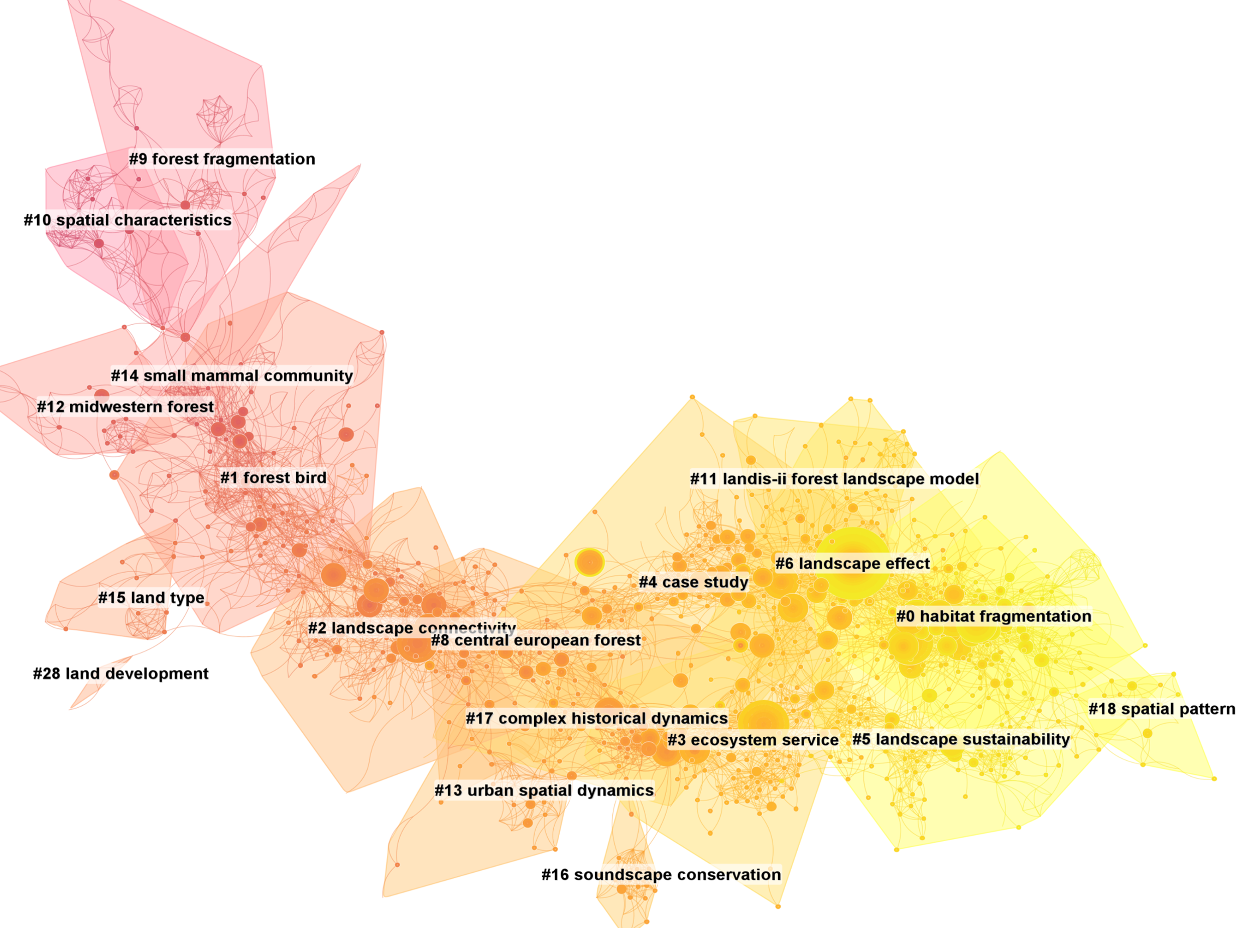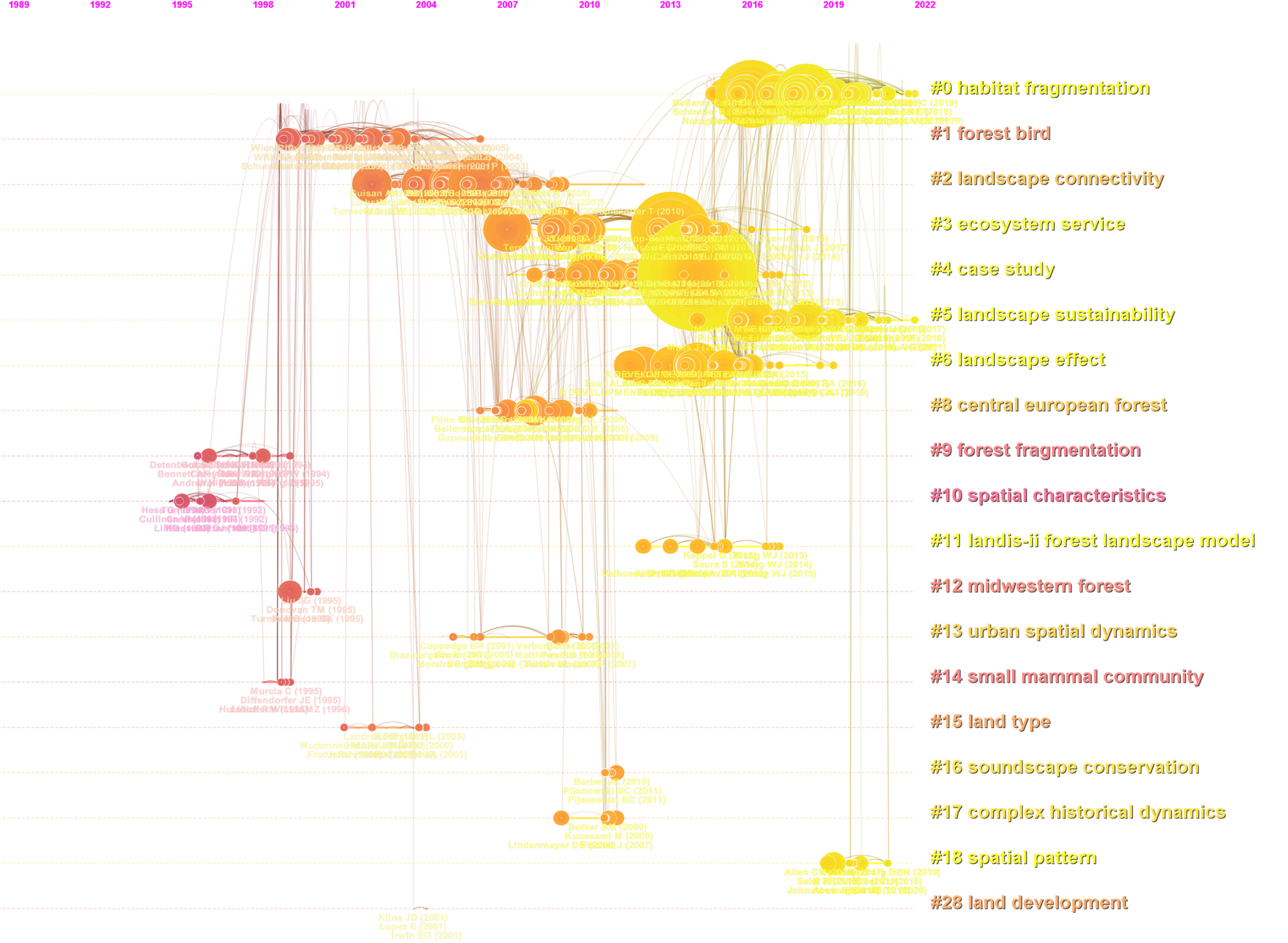 Figure 4 Cluster map of topics of publications in Landscape Ecology from 1987 to 2022